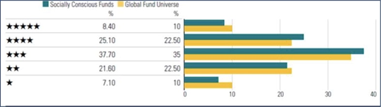 - Lo studio di Morningstar del 2016, un monitoraggio dal 2002 del rating quantitativo di ciascun fondo classificato come “socially conscius” (dicitura di Morningstar per indicare i fondi sostenibili). Si è giunti alla conclusione che i fondi sostenibili hanno un profilo di rischio/rendimento simile se non leggermente migliore rispetto all'universo dei prodotti gestiti: la percentuale è più elevata per le 5 stelle rispetto alla percentuale associata a 1 stella (8.40% e 7.10 %), esattamente come per la percentuale di 4 stelle rispetto a quella relativa alle 2 stelle.